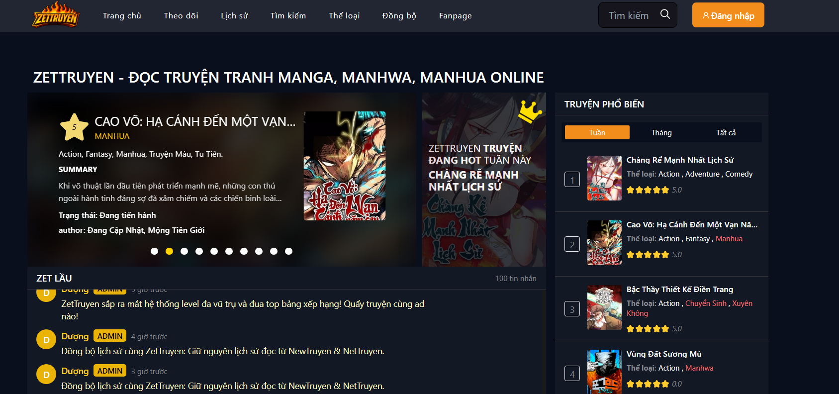 ZetTruyen tập trung mạnh vào truyện tranh Manhua Trung Quốc, từ những bộ nổi tiếng cho đến các series mới đang lên. Việc định hướng nội dung rõ ràng giúp nền tảng này nhanh chóng thu hút cộng đồng độc giả có cùng sở thích.